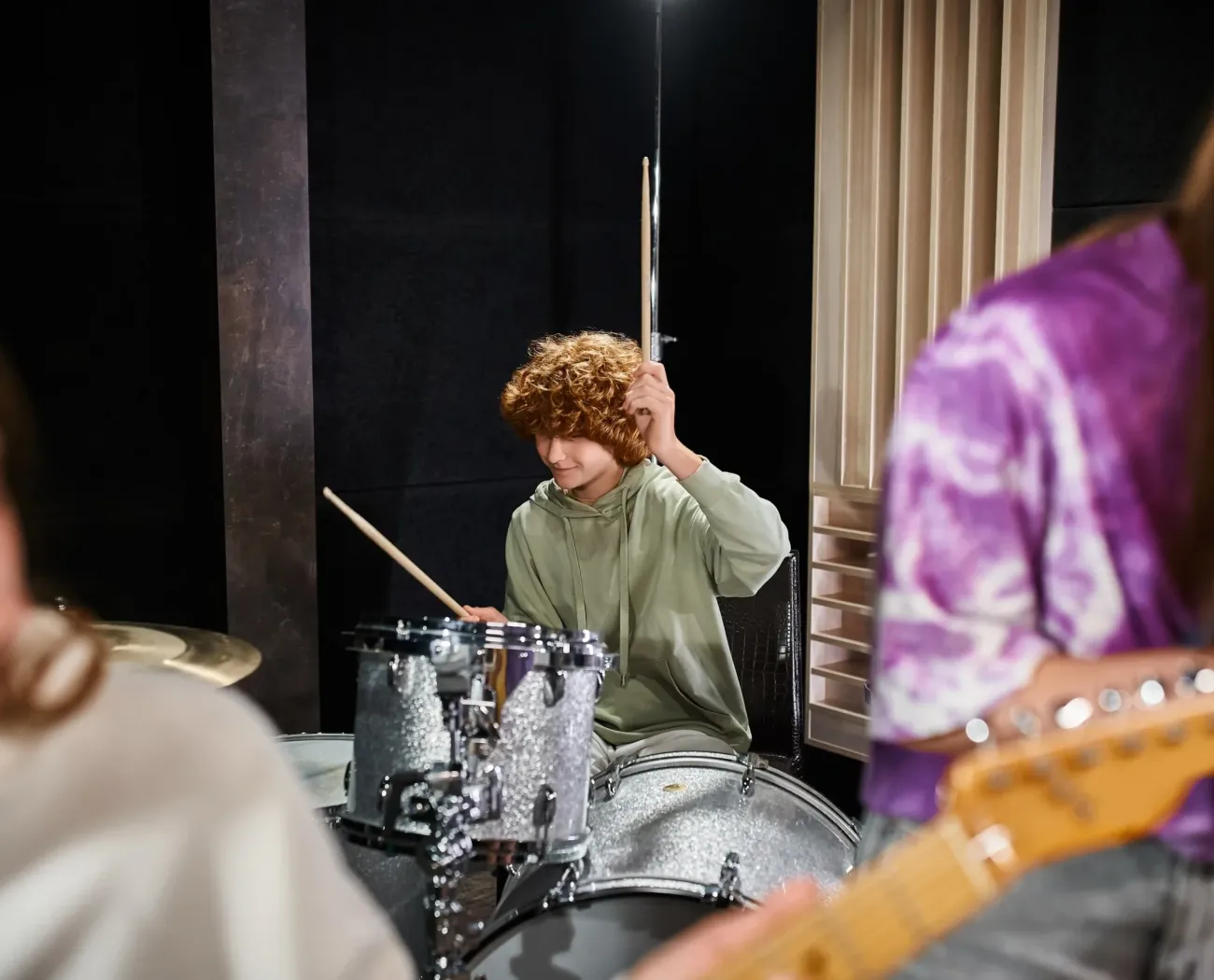 Riff Camp Pro is the ultimate teen summer music camp, designed for young musicians of every kind, including drummers, guitarists, bass players, singers, pianists, violinist, horn players, and more, along with teens exploring behind-the-scenes work like audio engineering, music production, or band management.